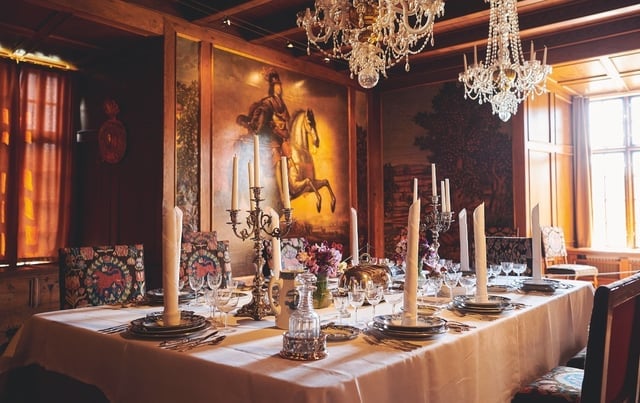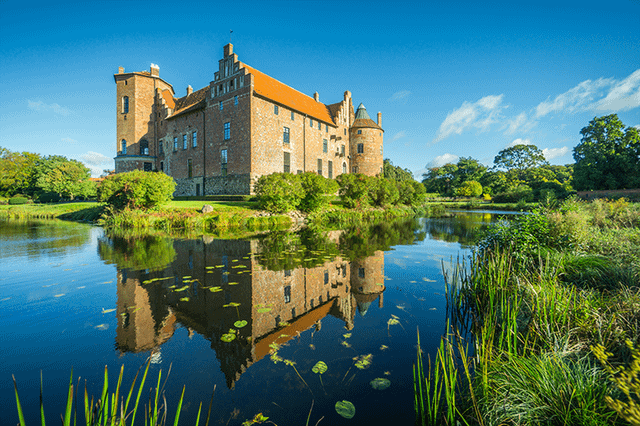 Immagine 1: Il castello più acqua più verde: Un castello rinascimentale riflesso nell’acqua piena di ninfee, è difficile trovare qualcosa di più magico. Immagine 2: Un’altra immagine dell’atmosfera verdeggiante. Immagine 3 – 7: Interni. Immagine 8: Abete Gjørvel. Immagine 9: Sivert Grubbe.
