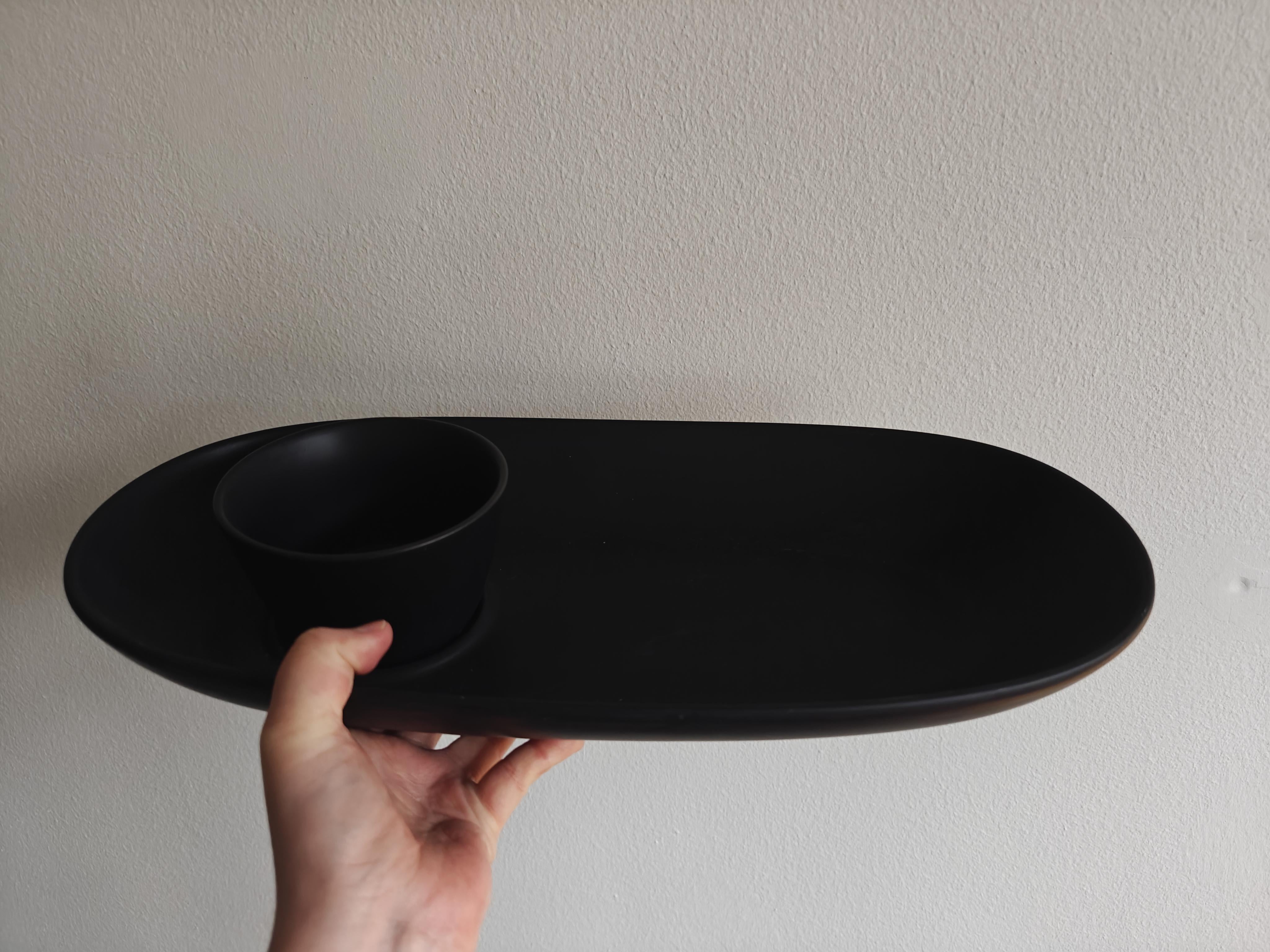 Ser ut som något man kan ha en dipp/sås i skålen och det man dippar på tallriken, t.ex. soja och sushi