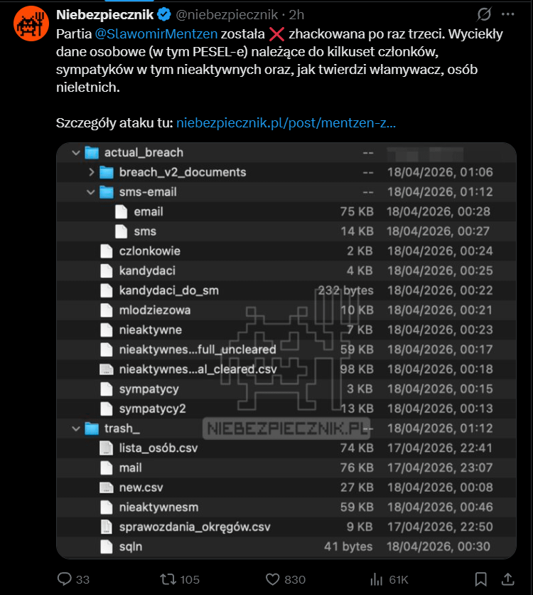 sech1p on 20/04/2026 11:01 Mentzen, Berkowicz, etc. tacy techbrosi (Berkowicz iirc z wykształcenia informatyk) a bezpieczeństwa danych nie umieją upilnować xD