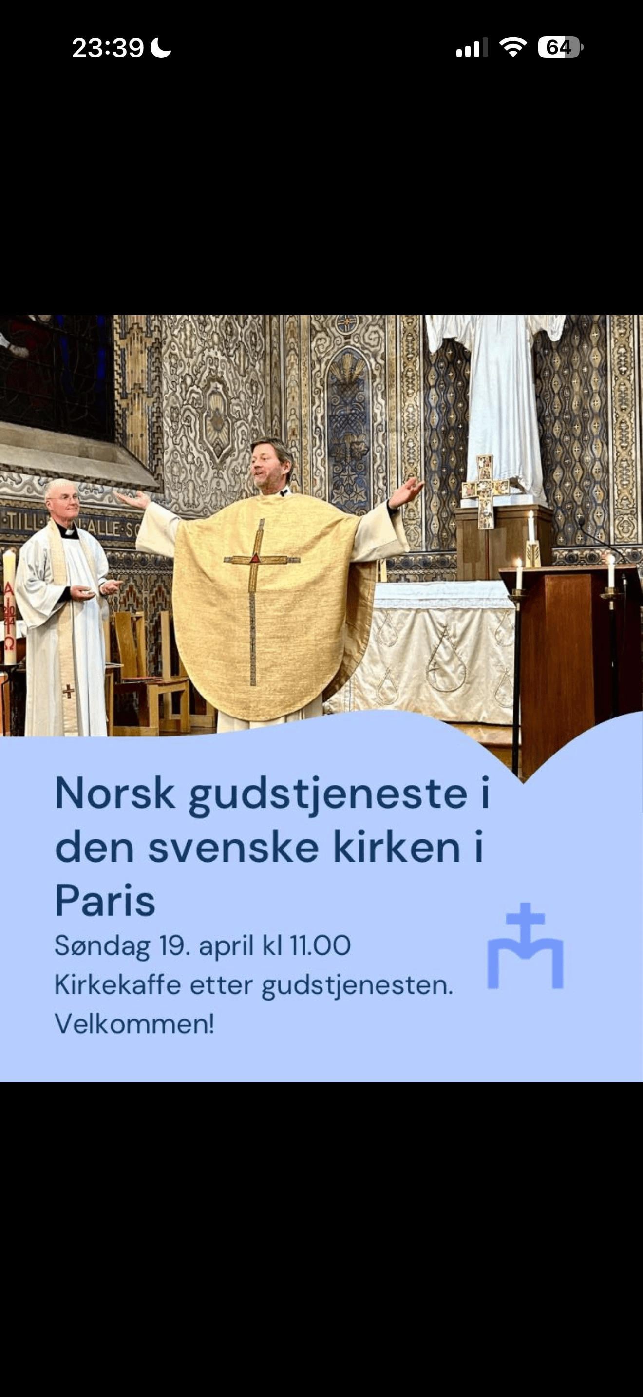 Norsk gudstjänst i en svensk kyrka lokaliserad i Frankrike? Har jag tolkat norskan korrekt här?