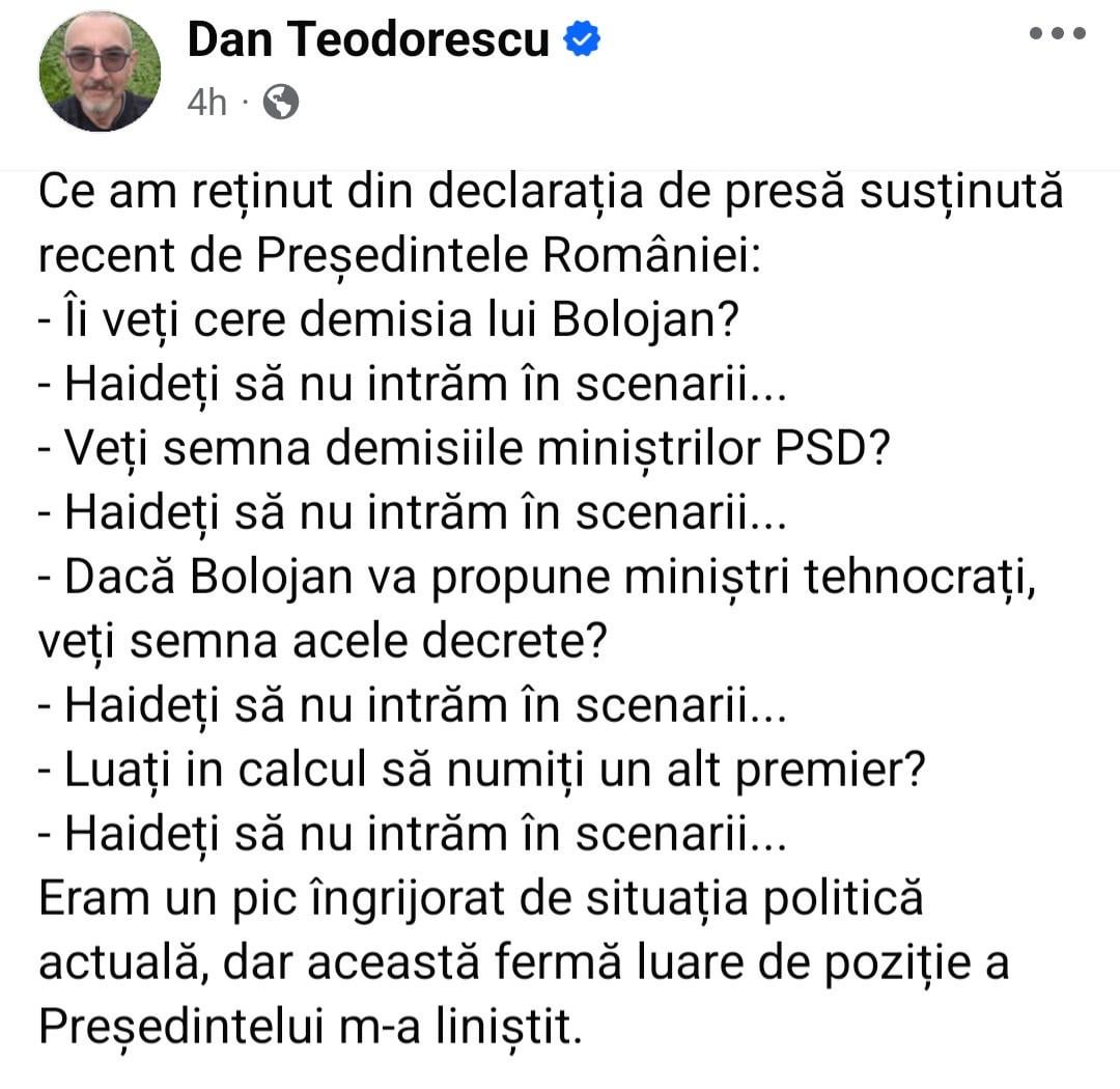 nicușor nu are capacitatea să răspundă la întrebări ipotetice. și în campanie la orice astfel de întrebare îți evita răspunsul și ori îți spunea ca acest scenariu e imposibil, ori să nu intrăm în supoziții