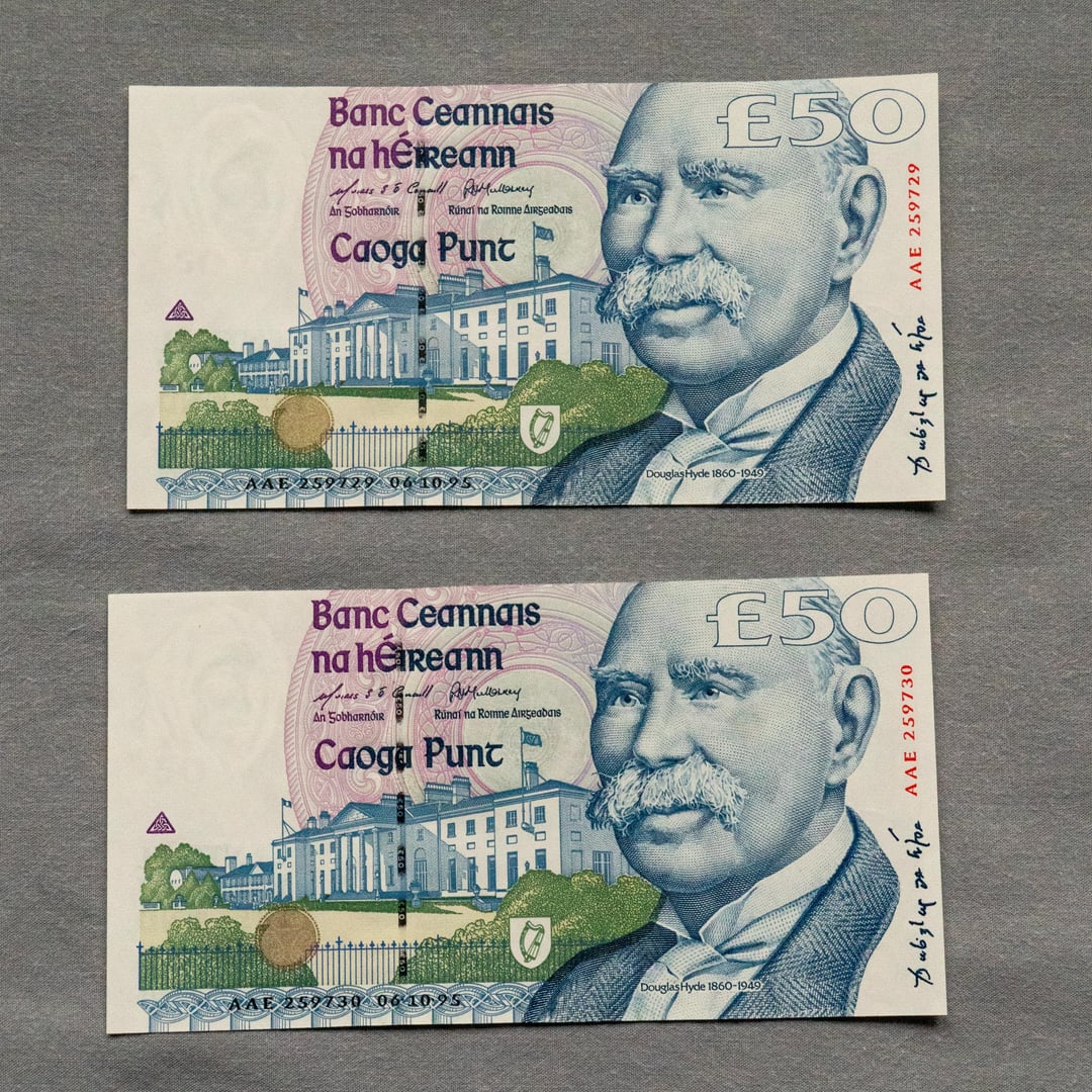 2 cinquanta sterline £ 50 banconote Douglas Hyde (1995)