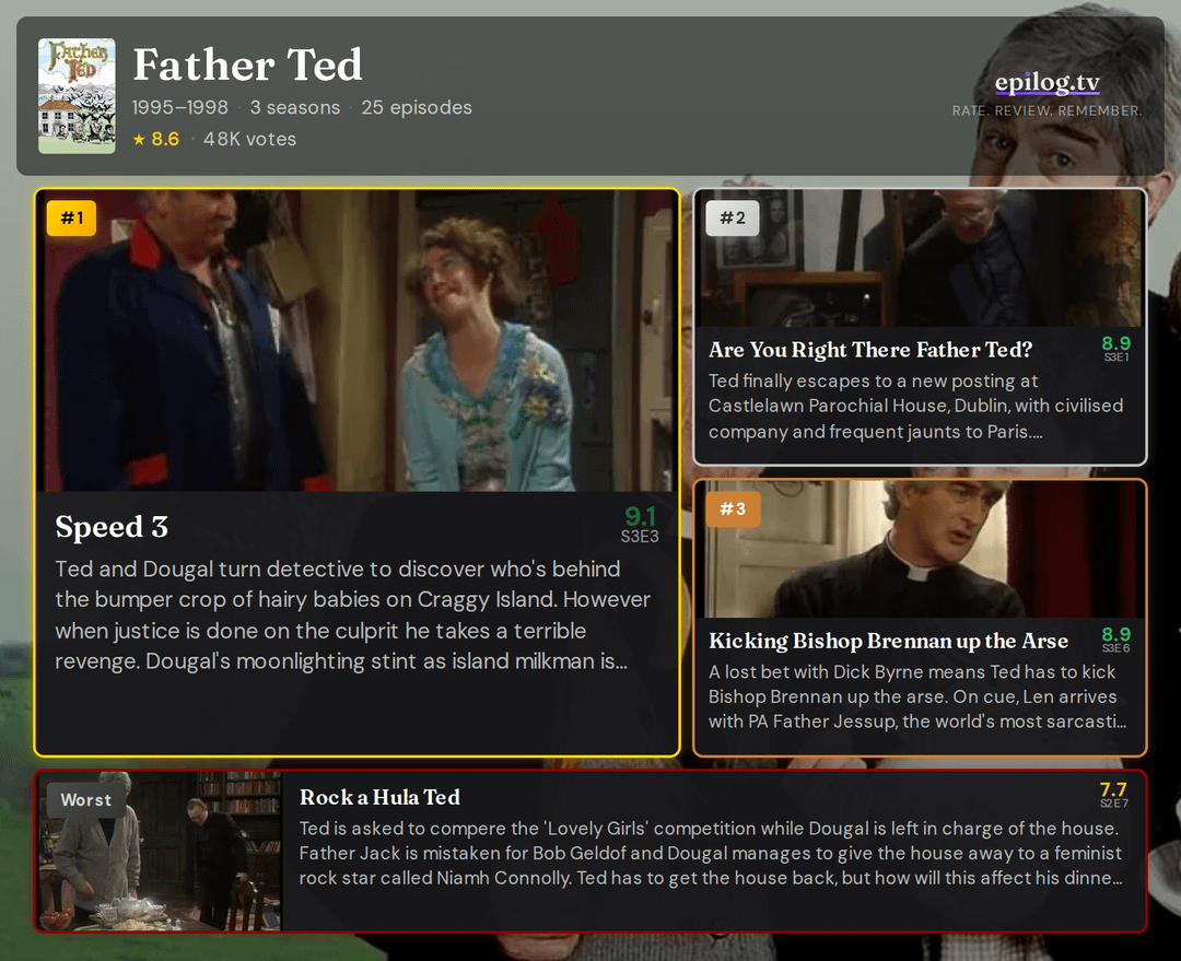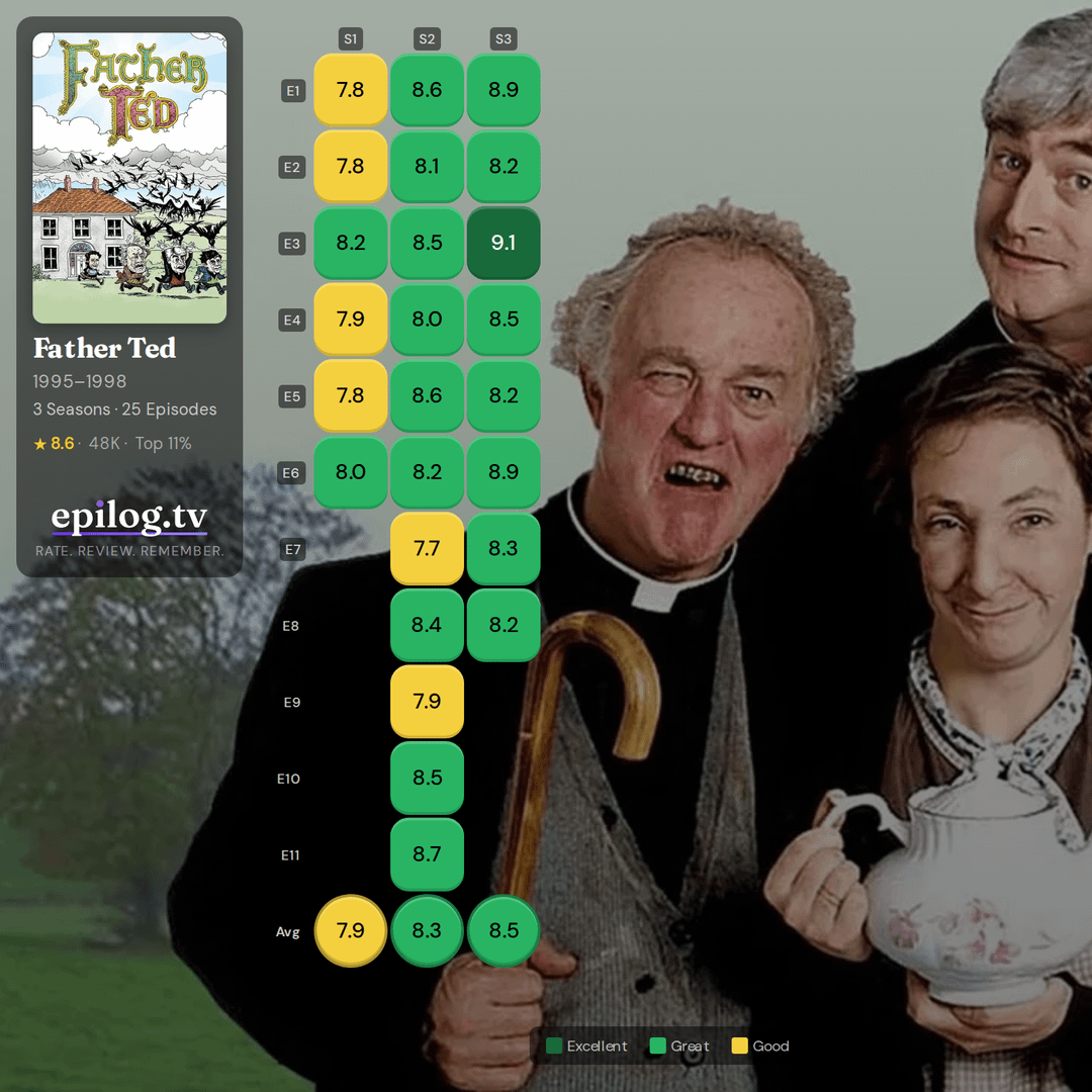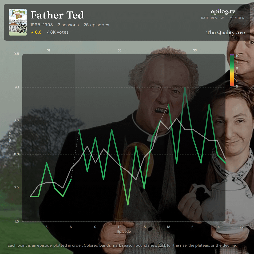 I never watched father ted but always assumed it was a long running show and not only having a maximum of 11 episodes in a season and the fact that it only has 3 seasons