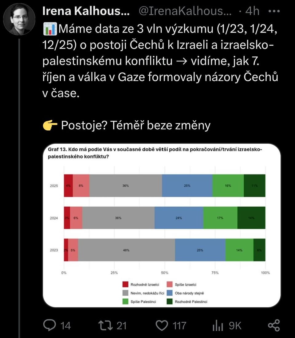 Gáza, tam ta mentální gymnastika ač mizerně tak možná ještě funguje, ale přemety, které je člověk donucen dělat, aby obhajoval a podporoval i to co se děje na Západním břehu Jordánu, nebo na jihu Lebanonu je výkon hodný olympiády. A lidé, kteří člověka, který kritizuje IDF a vládu Izraele označují za antisemitu jsou prostě dementi, nebo boti.