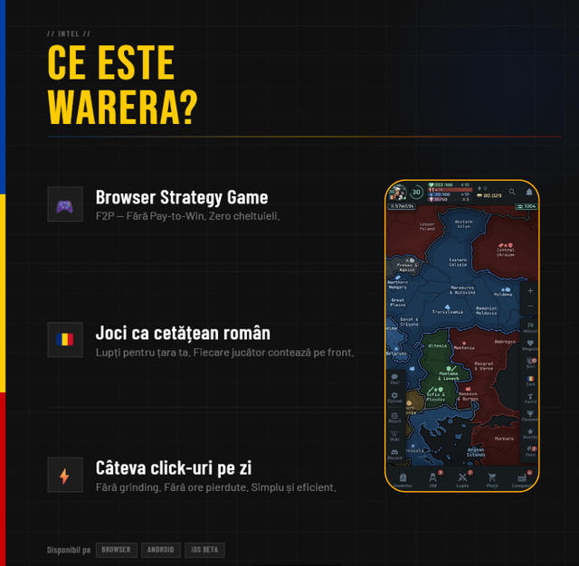 Voglio presentarti WarEra, un browser game di strategia multiplayer, gratuito e senza pagamento per vincere. Nessun download, gioca direttamente dal browser del tuo telefono o PC.