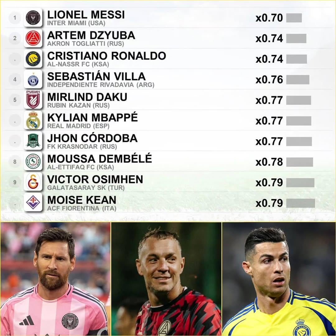 [CIES Football Observatory] La maggior parte dei giocatori “più pigri”, calcolati in base alla distanza media percorsa rispetto al resto della squadra. Messi, Dzyuba e Ronaldo sono i più pigri. Kylian Mbappe e Moise Kean sono gli unici giocatori dei primi 5 campionati a fare la lista