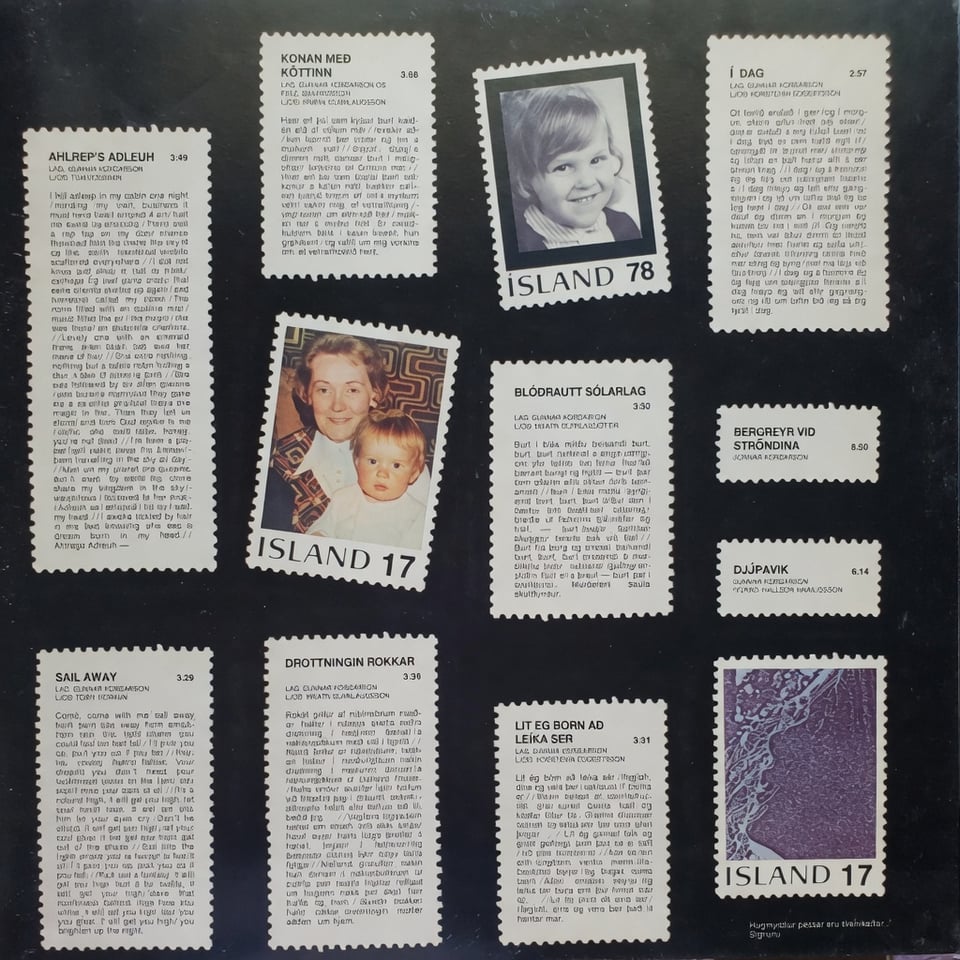 La canzone “Blóðrautt sólarlag” dal film televisivo omonimo (1977) è stata pubblicata sull’album “Ísland 81” di Gunnar Þórðarson nel 1978. E ho faticato a trovarne il testo, ma mi mancano ancora alcune righe. Soprattutto dalla seconda parte. Puoi ascoltare la canzone qui: https://youtu.be/YD4UfawnwT4
