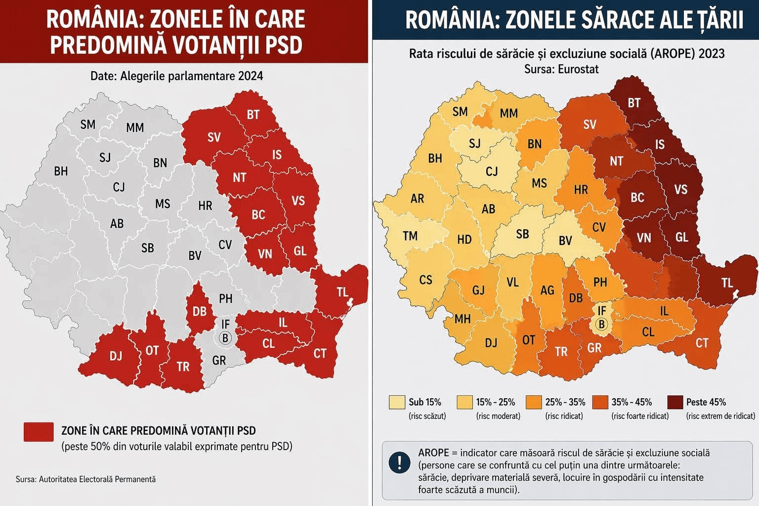Firește că cele mai sărace județe votează partide mai de stânga, ce ar repartiza resurse și la săraci. Problema e că al nostru partid de stânga e pus pe furtișag, nu pe ajutat persoane vulnerabile.