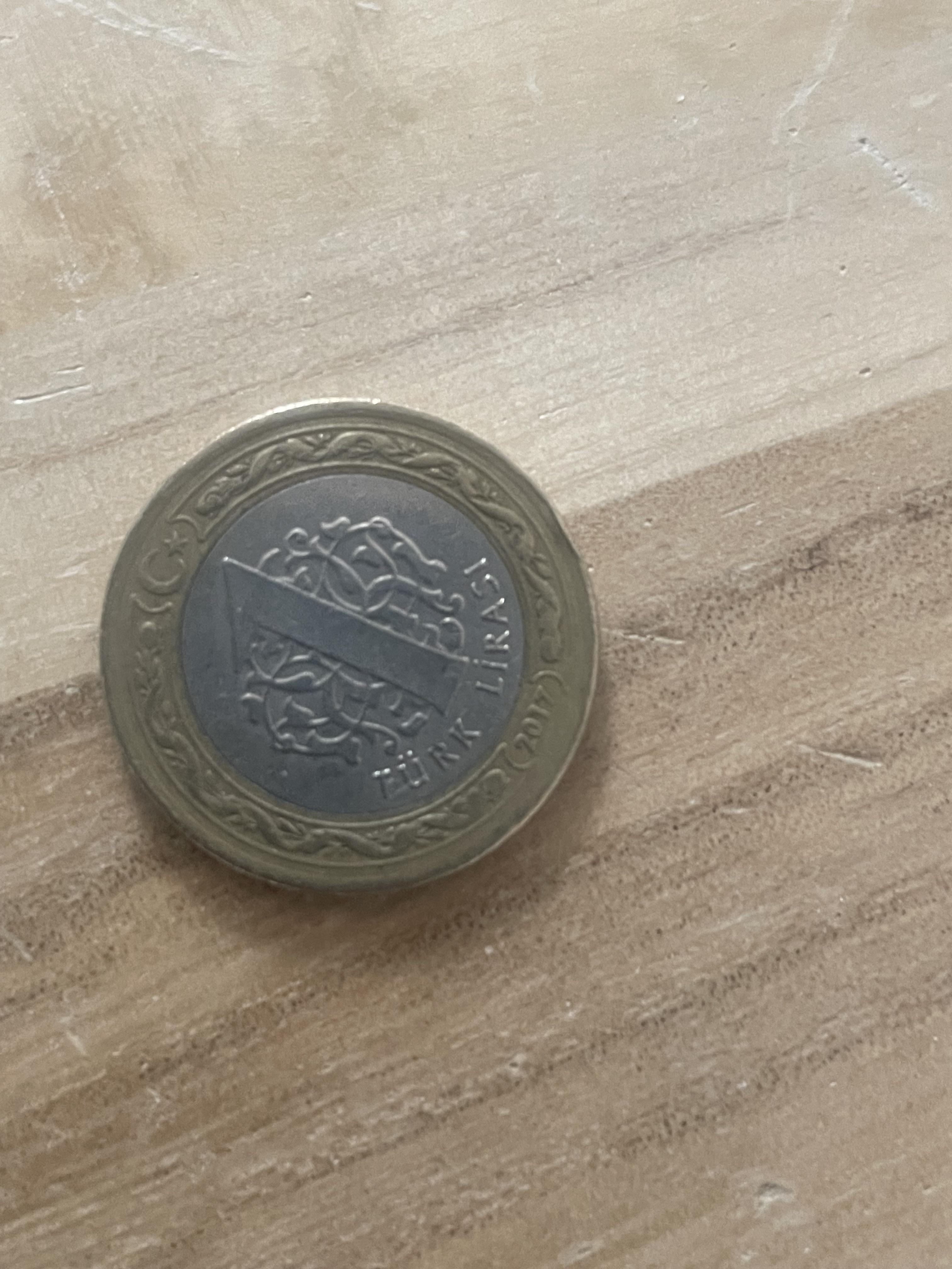 1 Turkish Lira is same size as a 2โฌ coin, but the colors are the wrong way round.