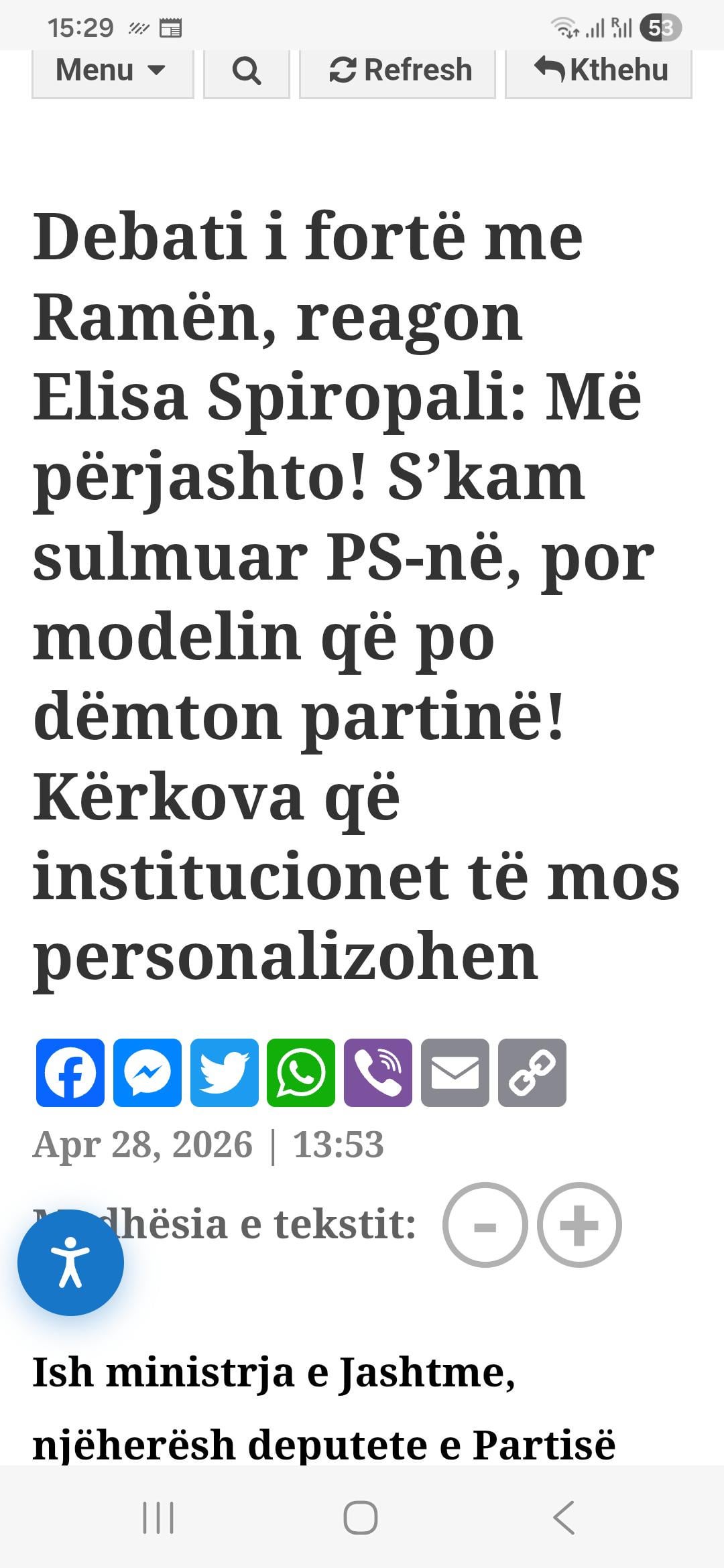 albo_kapedani on 28/04/2026 13:43 Je minimalisht 9 vjet shumë vonë për këto fjalime “burrërore” moj Elisa e Spiropalëve.