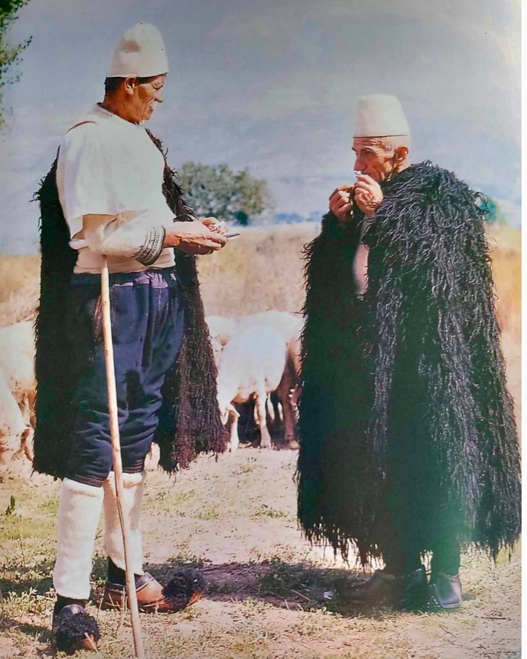 Mi sono imbattuto in questi tradizionali mantelli da pastore (seconda immagine) – penso che potrebbero essere chiamati “gunë” o qualcosa di simile, ma non ne sono del tutto sicuro. Intendo quelli lunghi in lana/montone con il vello all’esterno.