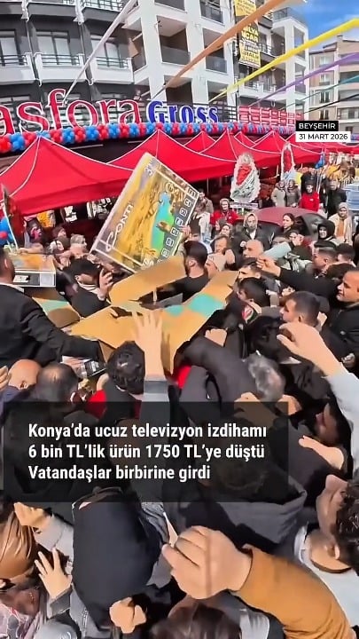 Un televisore venduto a prezzo scontato in un mercato di Konya ha provocato una fuga precipitosa. Quando televisori del valore di 6mila TL furono messi in vendita per 1750 TL, 45 televisori furono esauriti in pochi secondi e si seppe che c’erano persone che svenivano mentre i cittadini si schiacciavano a vicenda durante l’incidente.