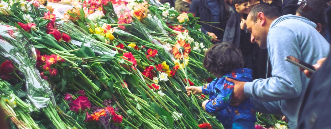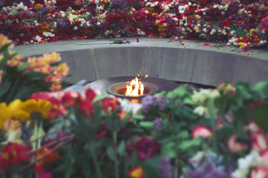 È stata un’esperienza incredibilmente emozionante. Le file su file di fiori si accumulano. Il flusso costante di persone di passaggio. Volti di età e provenienze diverse. Il gruppo occasionale che arrivava e riempiva lo spazio con le proprie voci attraverso il canto. Non ho scattato molte fotografie, in realtà ho trascorso gran parte del tempo lì, osservando in silenzio, sentendo l’atmosfera. Pensando all’immensa perdita che molte famiglie di passaggio potrebbero aver subito direttamente a causa del genocidio stesso o dei recenti conflitti.