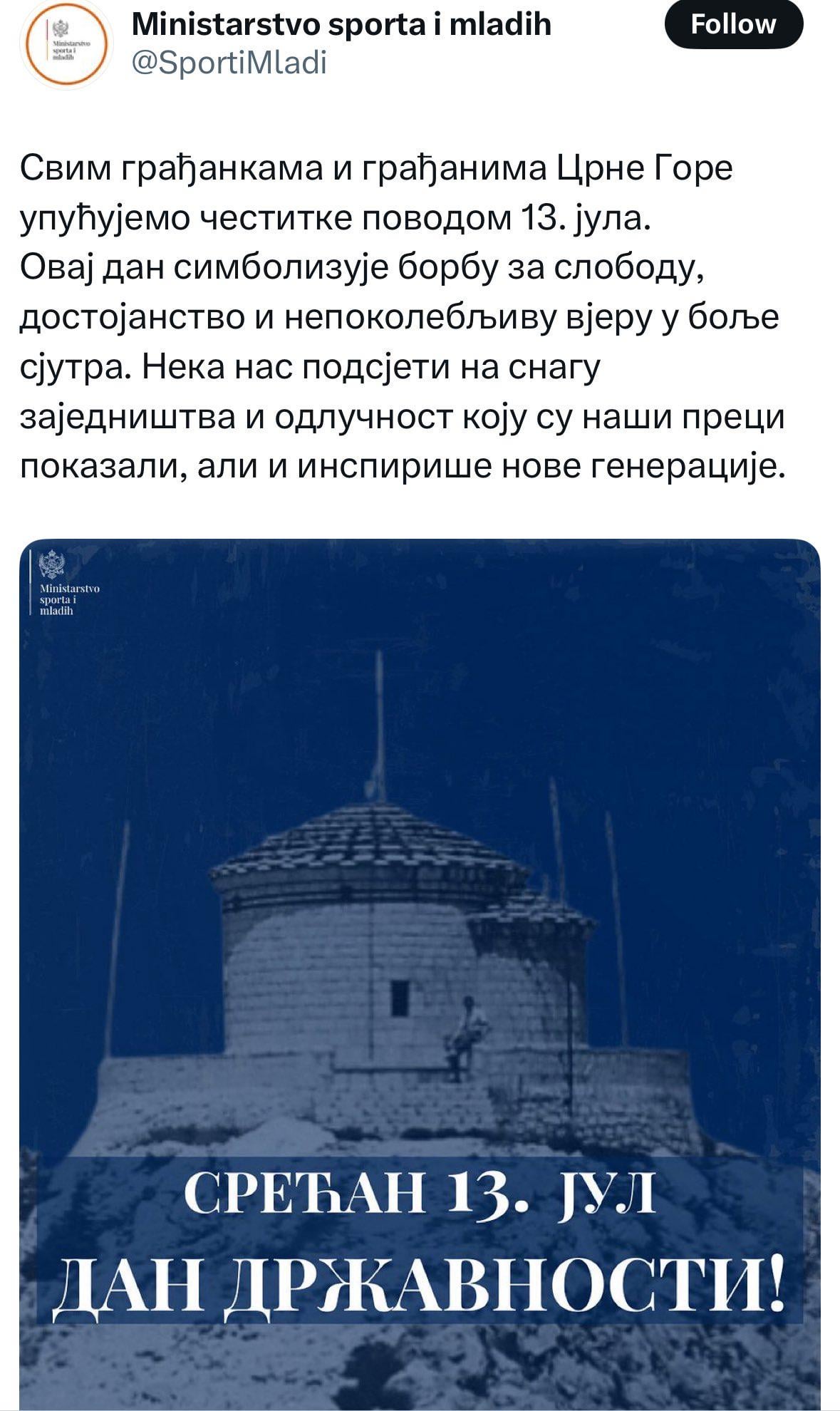 Il Ministero dello sport e della gioventù invece della giornata statale delle congratulazioni ai motivi sportivi, mettono la cappella di Karadjordjevića. In uno stato secolare ….