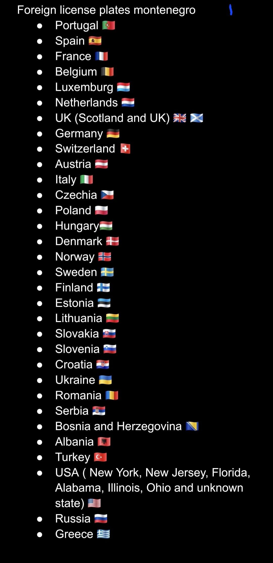 Sorpreso dalla quantità di diversità nelle targhe straniere, al punto che ho fatto un elenco.