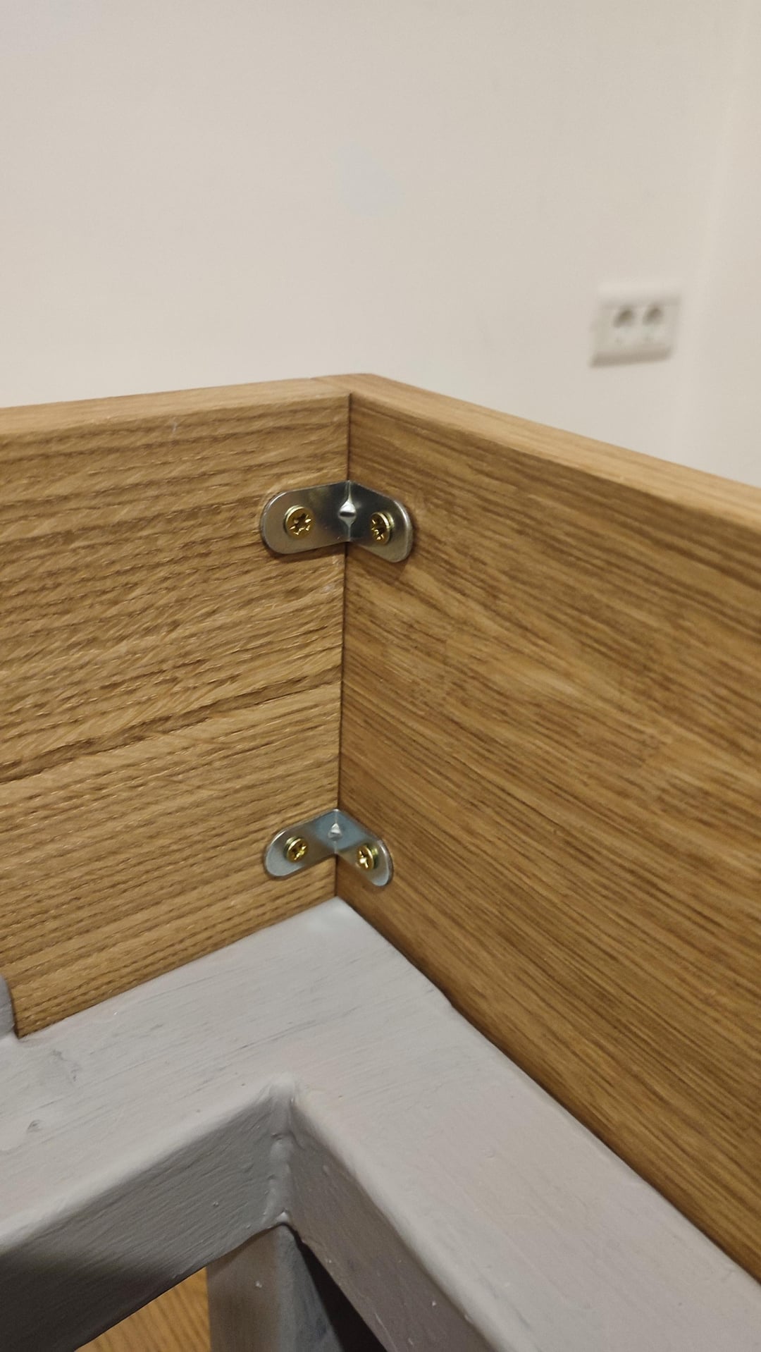 Le pagine sono impiallateggiate da Mediapan di Decor Ivo. Siamo soddisfatti dell’impiallacciatura di quercia, ma la striscia di bidone è molto male. È molto debole incollato, quindi abbiamo dovuto dare molti posti per carini. Inoltre, tutti gli angoli dovrebbero essere un po ‘spostati, perché possono solo finire dritto, quindi il ćoškovi può segnare. Abbiamo preso TIK-oil nel raccordo per queste piastre. Il rivestimento perfetto per questa impiallacciatura.