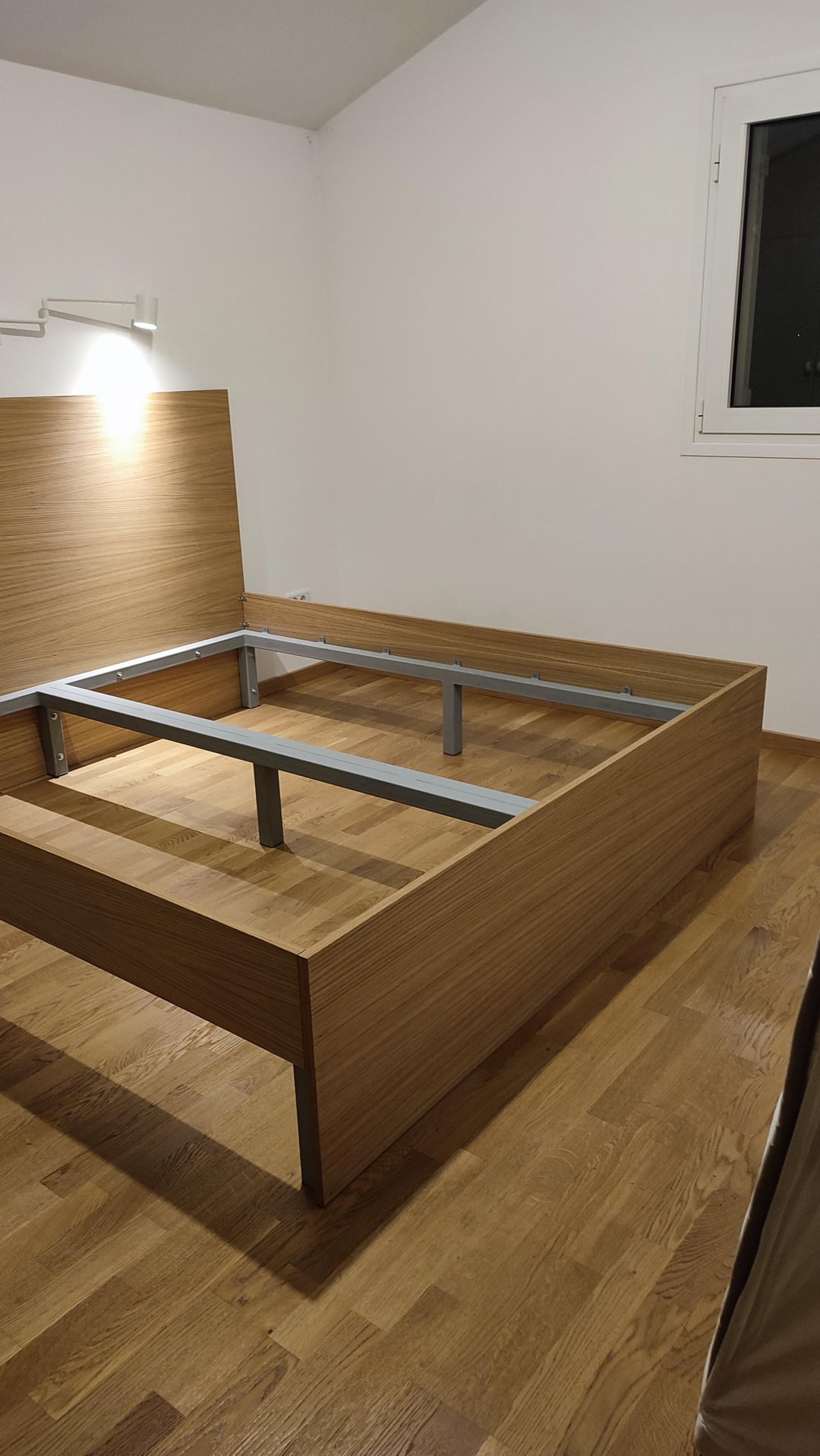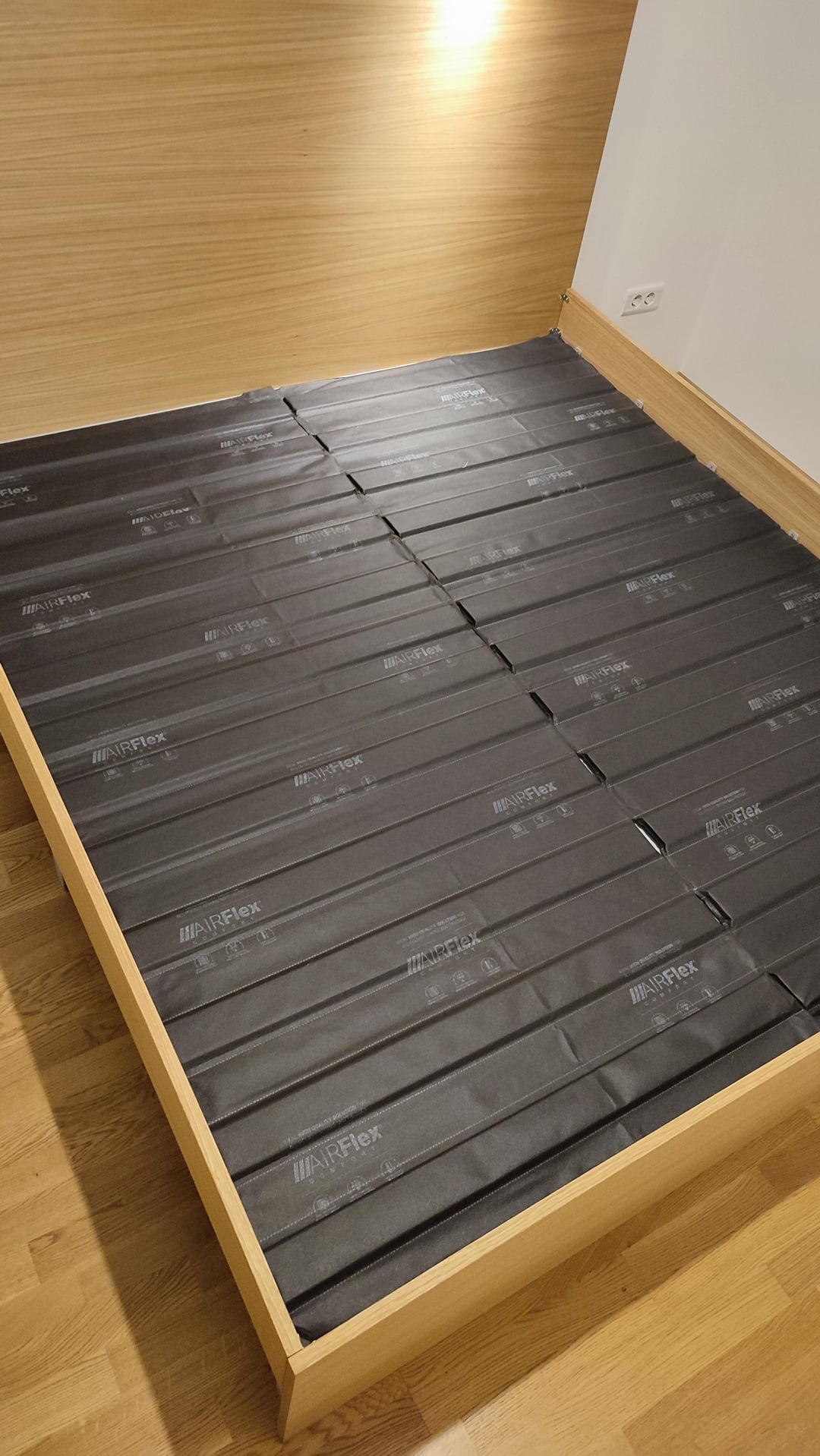 Abbiamo lasciato il letto 204×184 cm, 2 cm su ciascun lato del materasso. Si è rivelato eccezionale, ma in lunghezza avremmo potuto lasciare libero di lasciare 200 cm, perché questo materasso non si estendeva.