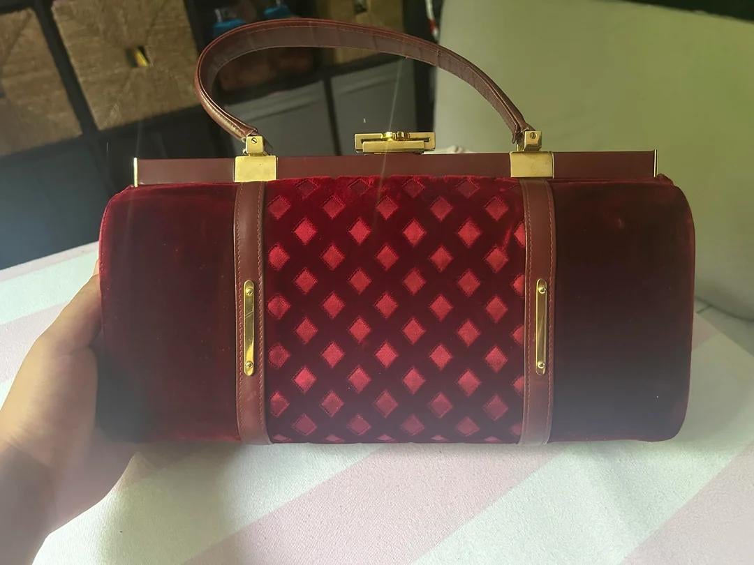 Sacca temporale di velluto e cuocere rosso. Ha un aspetto davvero atipico e vorrei capire da dove può venire e da qual è la sua storia. Non trovo traccia di questo modello online https://www.reddit.com/gallery/1mi886z di Ok-Sock-5358
