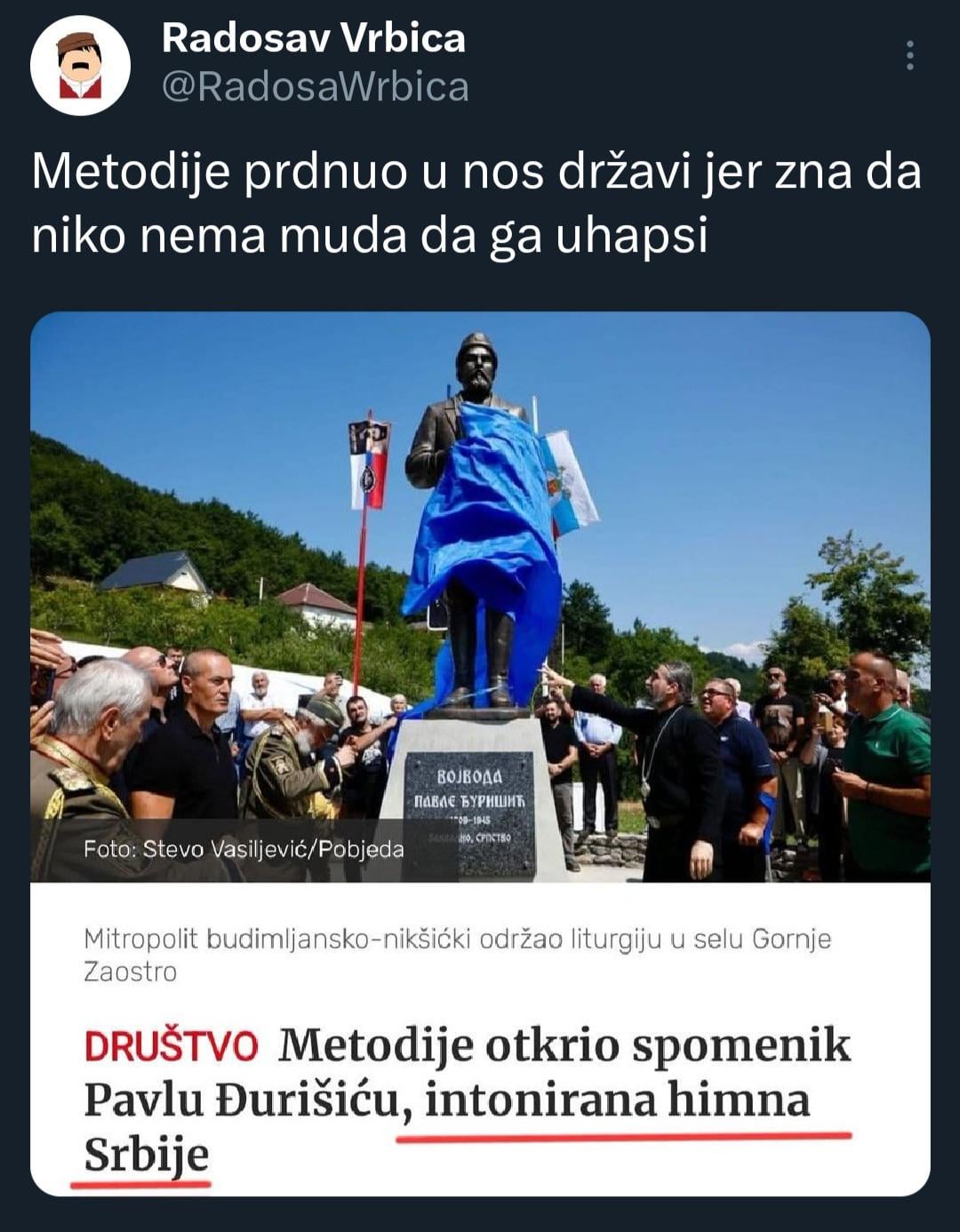 Metodije će da prebaci spomenik u crkvu – nema iznenađenje. Pozdrav za sve hrišćane koji žive po Isusovom učenju da šire ljubav, poštuju bližnjeg svog, ne lažu itd.