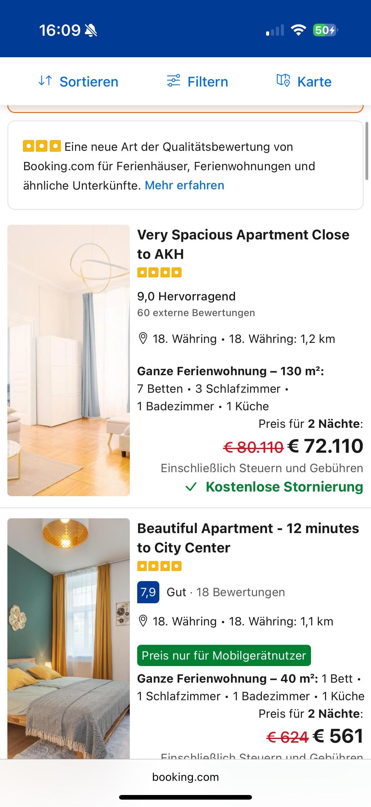Vermietet vom Hans, 85. Als ehemaliger Postler hat er sich die Wohnung um denselben Betrag wie nun 2 Nächte kosten damals gekauft, allerdings in Schilling.