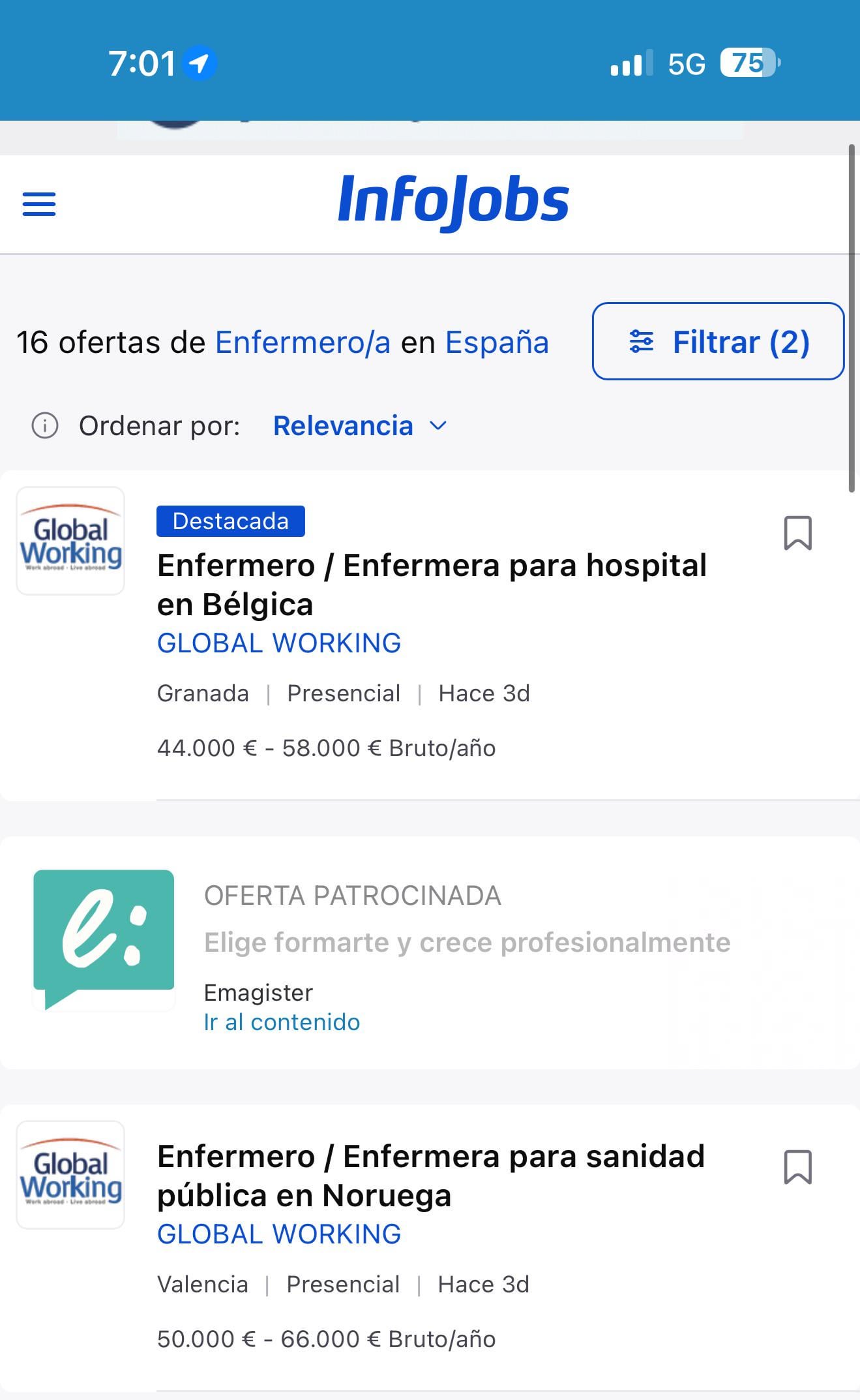 Ma c’è qualcos’altro che dovrei sapere, com’è secondo Col, ho visto su InfoJobs che posso trovare un concerto di infermiere per 40k euro all’anno, per favore fatemi sapere