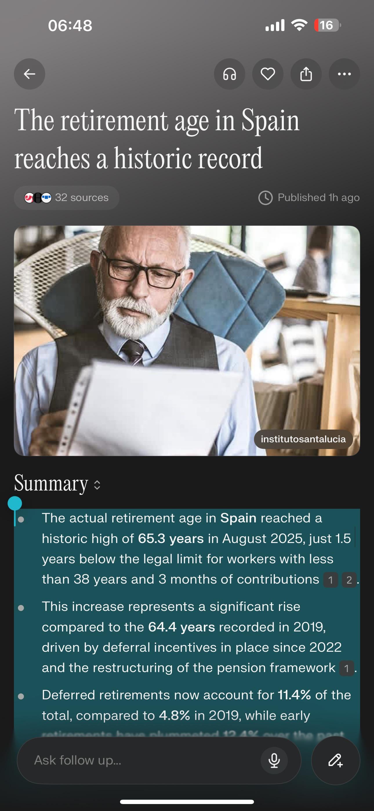 • The actual retirement age in Spain reached a historic high of 65.3 years in August 2025, just 1.5 years below the legal limit for workers with less than 38 years and 3 months of contributions.
