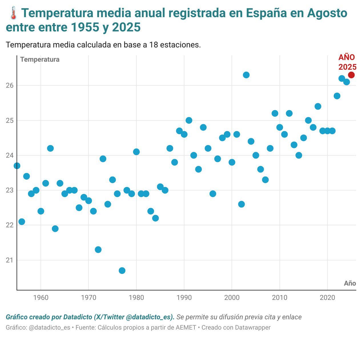 Tra gennaio e agosto, la Spagna ha ricordato una temperatura media di 17,9º, la più calda finora da quando sono stati mantenuti i record. Tra gennaio e agosto, la Spagna ha registrato una temperatura media di 17,9º, essendo al momento la più calda poiché ci sono record. 2025 – 17,9º. 2024 – 17,7º 2023 – 17,7º