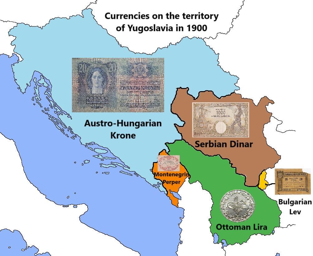 Fun fact: The Perper was equivalent to the French franc under membership in the Latin Monetary Union, so it was pegged 1:1 to the franc