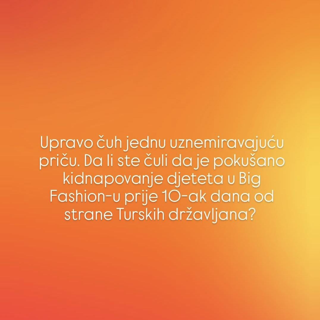 Probali dijete da kidnapuju u deltu, kidnapovali zenu iz PG u Danilovgrad, ko zna sto ce jos da urade a mi samo cutimo i pustamo desetine hiljada da dolaze odje bez ikakvih ogranicenja