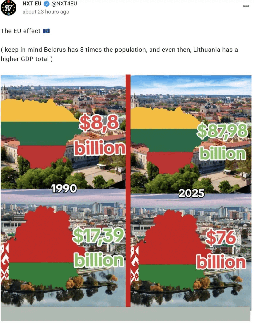 Not arguing about value of open relationships with the West Europe. But these numbers should really be adjusted to the purchase prices. Cost of living is lower in Belarus, plus a good amount of services are discounted for the population.