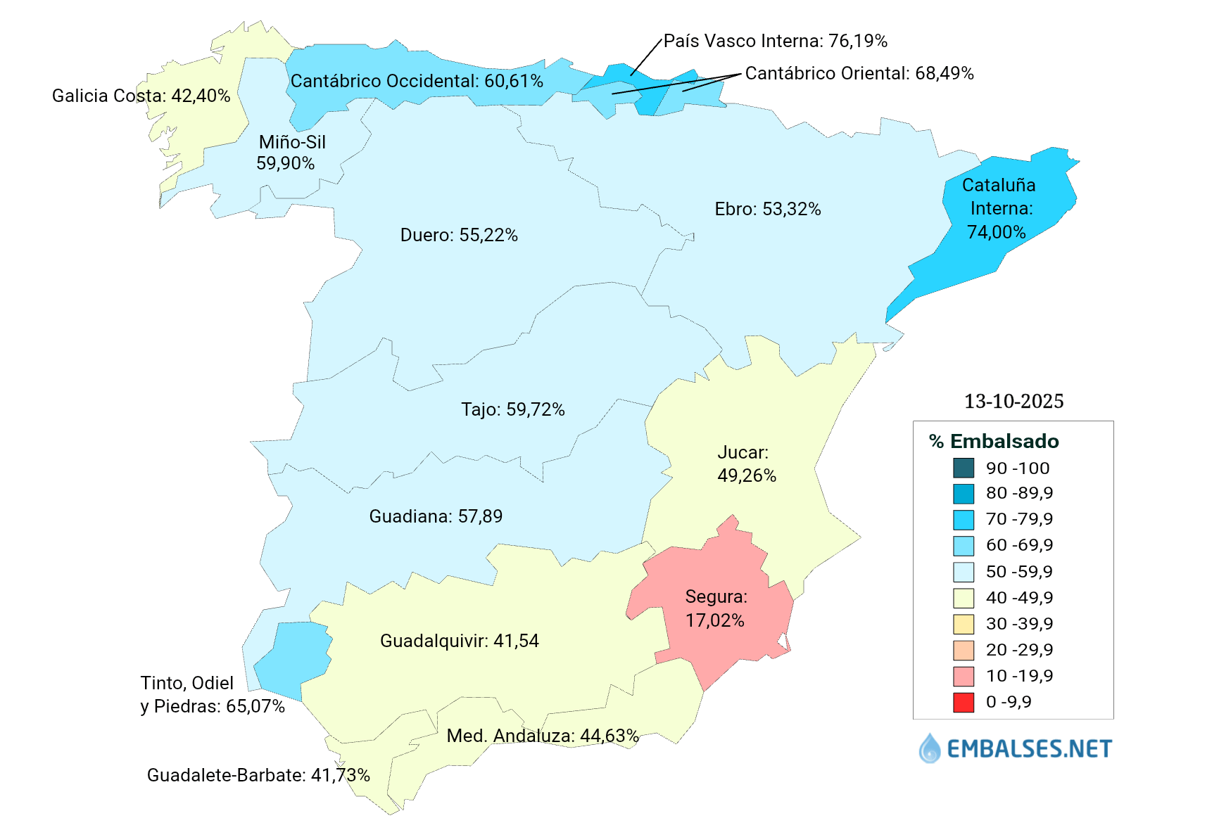 Livelli del bacino idrografico Spagna, 14/10/2025