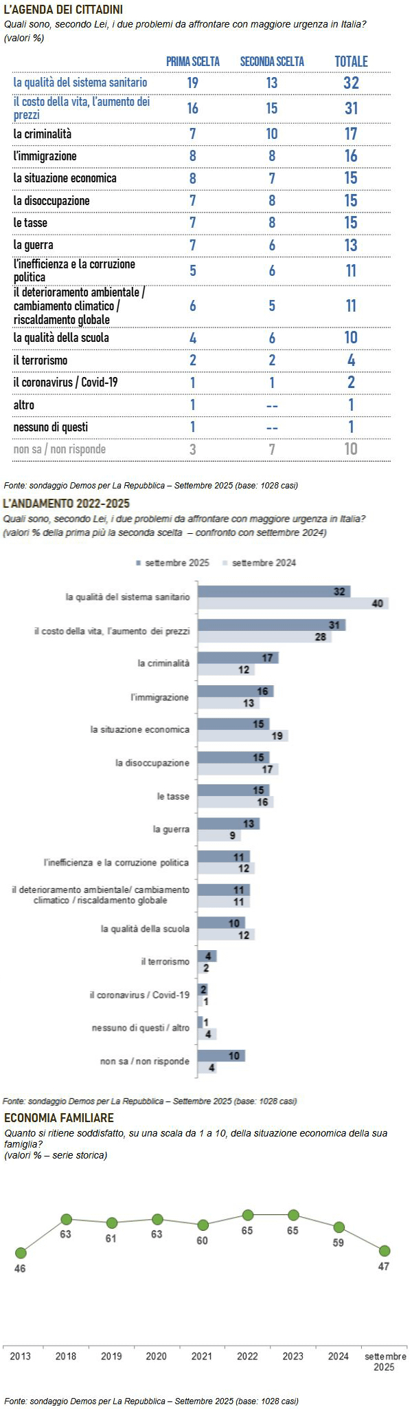 patagatto on 23/10/2025 13:05 aiut- l’immigrazione sopra situazione economica, disoccupazione, tasse, inefficienza e corruzione politica e scuola. Praticamente una rappresentazione della politica dei memini degli ultimi anni unito ad un profondo scollamento dalla realtÃ
