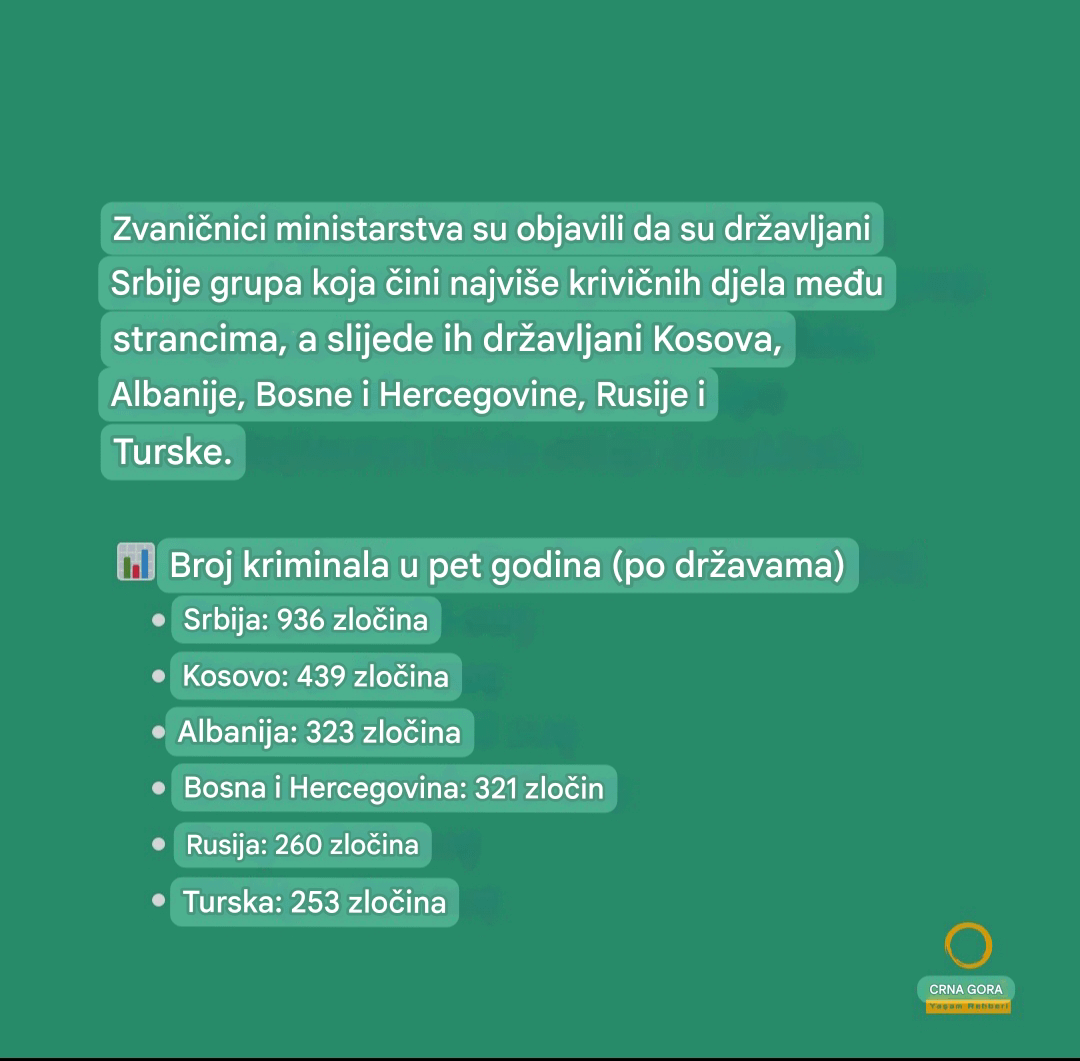 Ne padajte na ovu glupu pricu, Srba kroz CG pogotovo kao turista i slicno, vjerovatno prodefiluje 20x vise nego Turaka a rade samo 3-4x vise krivicnih djela. Slicno je i sa drugim komsijama, Bosancima, Kosovarima ili Albancima, samo u malo manjem broju.