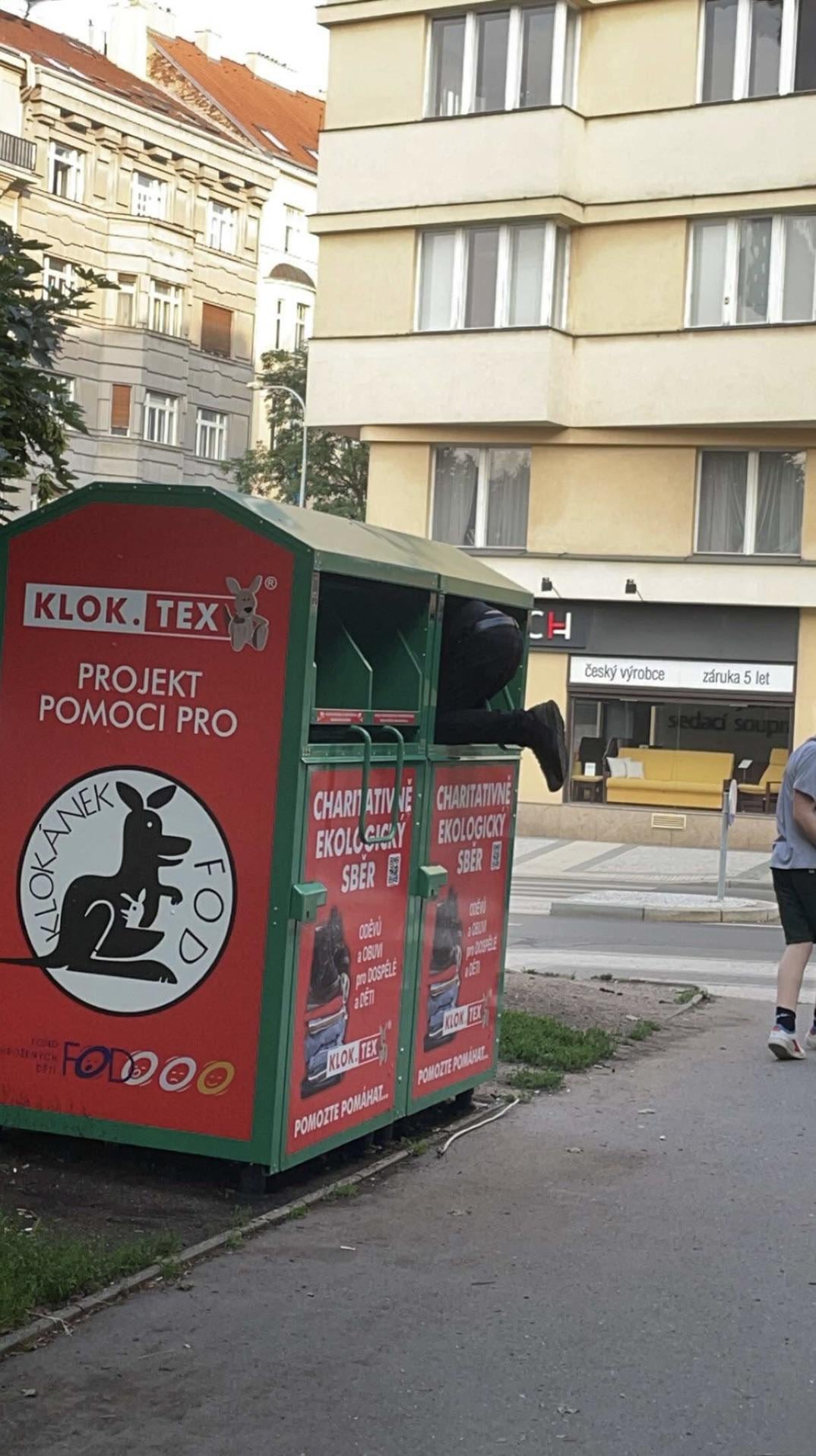 You’ve actually witnessed a very beautiful thing – this is how homeless people are born in Czechia. They come out of those bins in their already adult and homeless form and wonder around the streets.