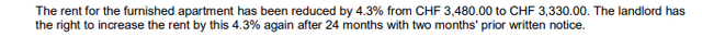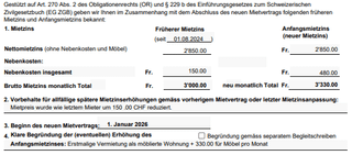 Also, 330 CHF monthly for furniture worth 10k CHF is excessive, so another reason to dispute the initial rent after signing the contract (as soon as you have the landlord-countersigned copy in hand).