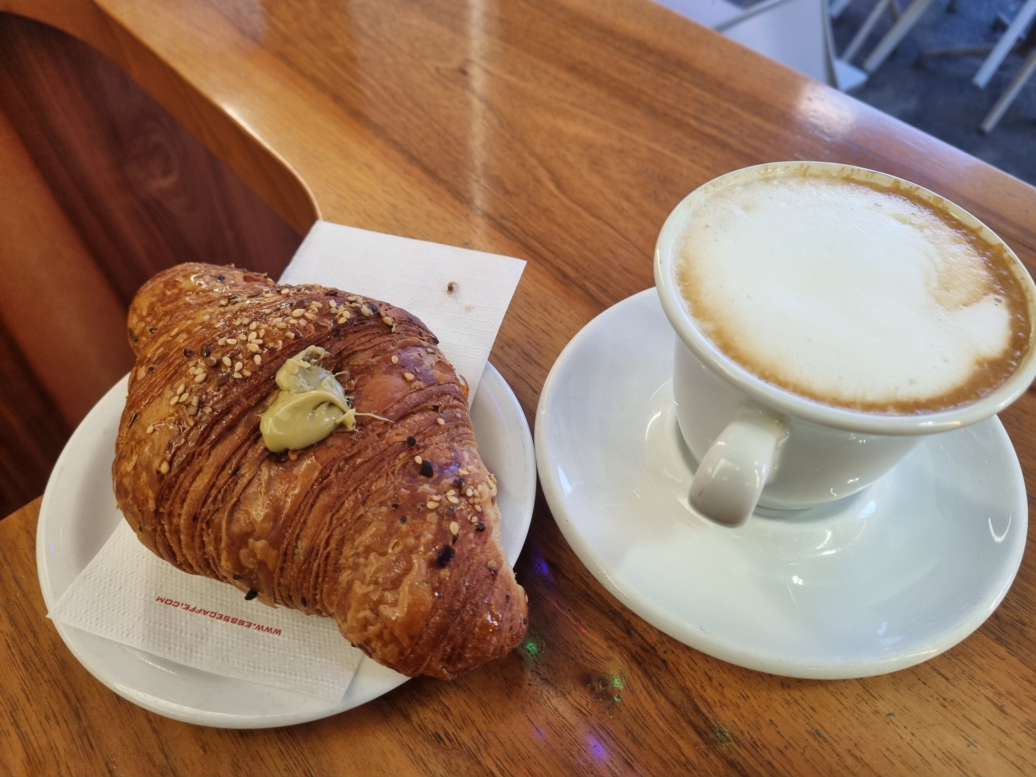 Cappuccino e brioche integrale al pistacchio