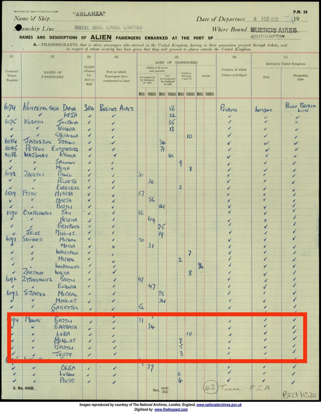 I genitori di mio nonno materno (bielorussi): Bazyli Nowik e Barbara (o Warka) Nikolaichik arrivarono in Paraguay nel 1938 a bordo della RMS Arlanza con quattro dei loro figli: Luba, Bazyli, Mikolaj e Jerzy.