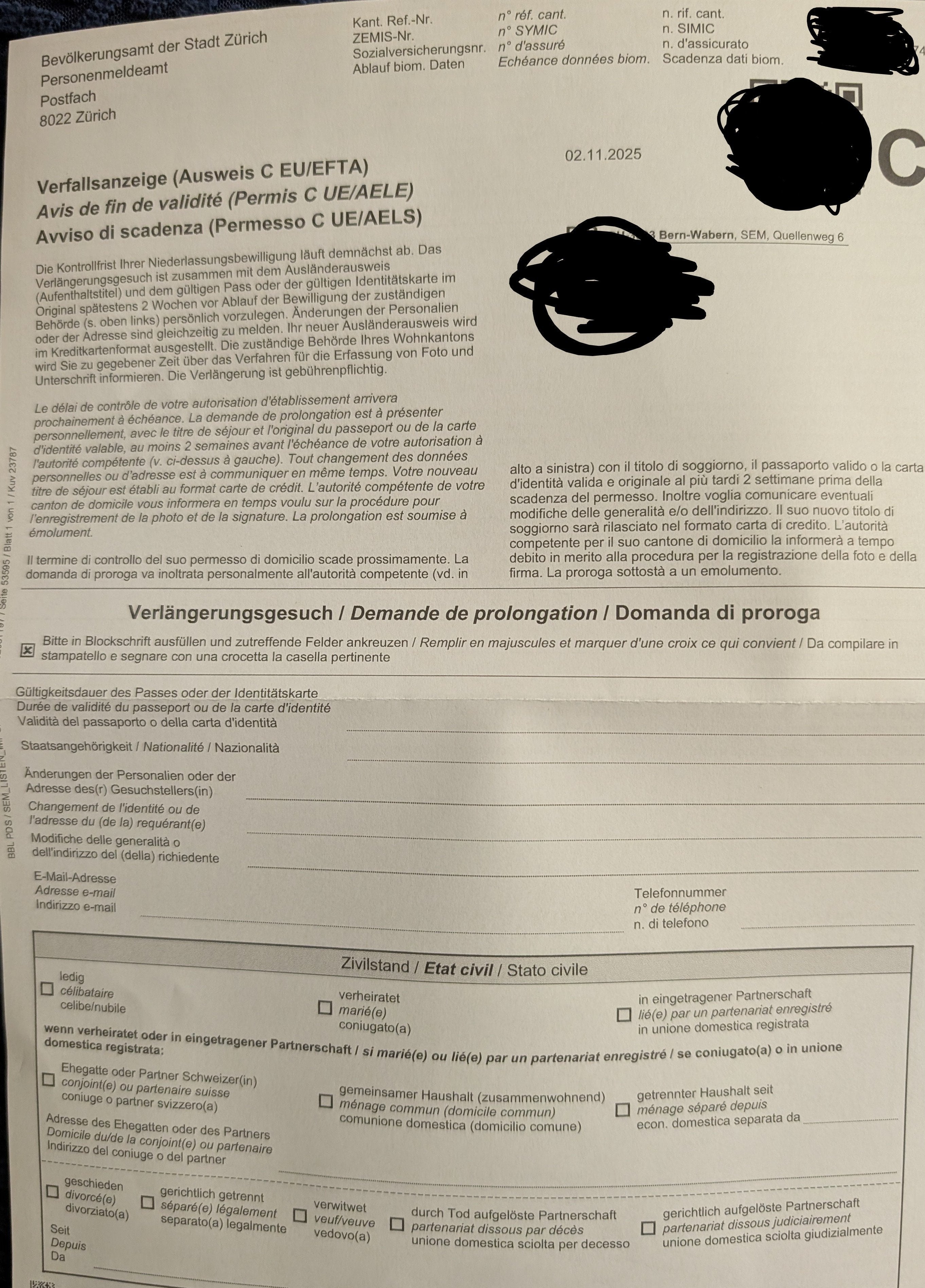 Ciao a tutti, il mio permesso C scade verso la fine di gennaio del prossimo anno. Abbiamo ricevuto un unico modulo (uno per persona) che ci ricorda che riceveremo un invito dall’ufficio immigrazione per scattare foto e firmare. Quello che non mi è chiaro è: devo spedire questi moduli già via posta (allegando copia dei permessi e dei nostri documenti personali) oppure dobbiamo portarli con noi il giorno dell’invito?