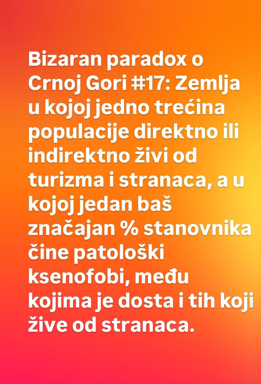 Sufficient-Horse5014 on 16/11/2025 15:06 ponosan sam ksenofo. ako eto bas moram da se definisem kao mrzac odredjene grupe ljudi koja preovladjuje kada su u pitanju prestupi i krsenje zakona.